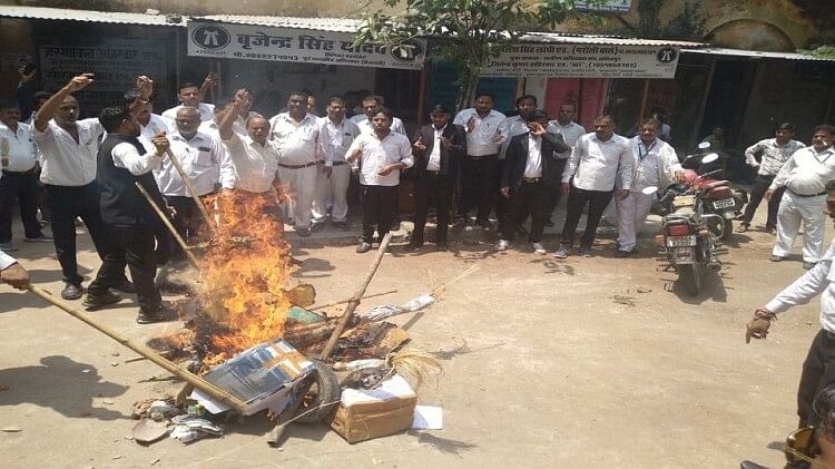 पुलिस फोर्स की मौजूदगी में अधिवक्ताओं ने डीजीपी का फूंका पुतला
