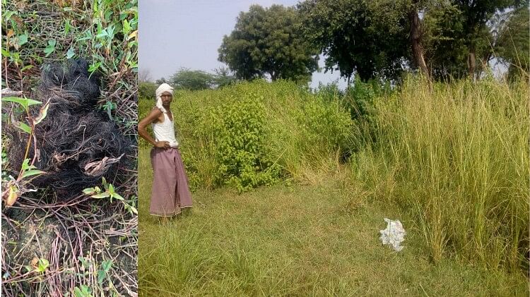 झाड़ियों में पड़ा सिर के बालों का गुच्छा और घटना स्थल, जहां मिला शव