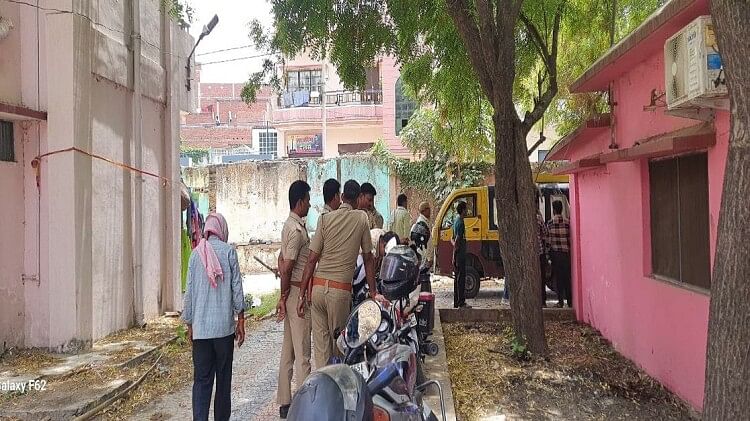 पोस्टमार्टम हाउस के बाहर परिजन और पुलिस