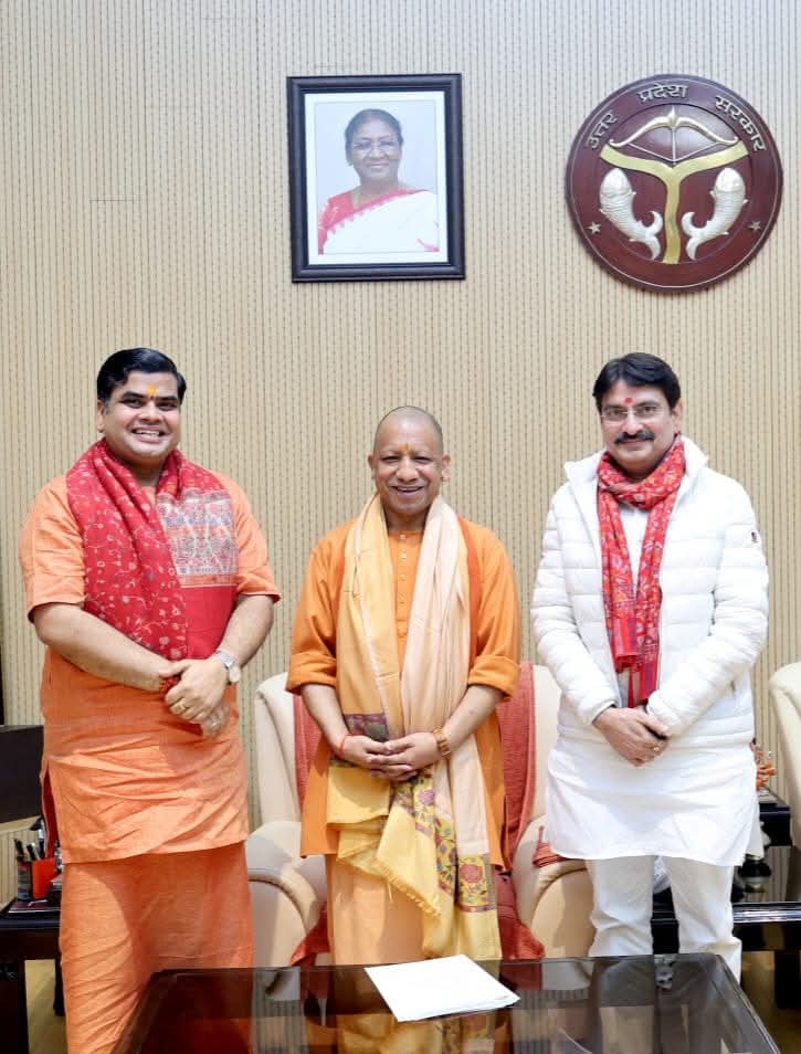 झाँसी मोंठ :- भाजपा नेता रामजी परिहार द्वारा आगामी 23 जनवरी से 31 जनवरी 2026 तक भव्य श्री राम कथा अमृतवर्षा का आयोजन कराया जा रहा है,पूज्य आचार्य शान्तनु जी महाराज के मुखार्विन्द से श्री राम कथा का रसपान क्षेत्रवासियों को मिलेगा,इसी के तहत भाजपा के वरिष्ठ नेता रामजी परिहार ने आचार्य शान्तनु जी महाराज के साथ लखनऊ स्थित मुख्यमंत्री आवास पर पहुँचकर सूबे के मुख्यमंत्री योगी आदित्यनाथ को श्री राम कथा में आने के लिये आमंत्रण पत्र सौंपा,बताया जा रहा है कि मुख्यमंत्री के साथ_साथ देश के वरिष्ठ भाजपा नेता श्रीराम कथा में उपस्थित होंगे!