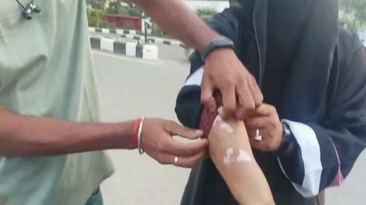 बुर्का पहने हिंदू लड़की हाथ पर एलर्जी का निशान दिखाते हुए