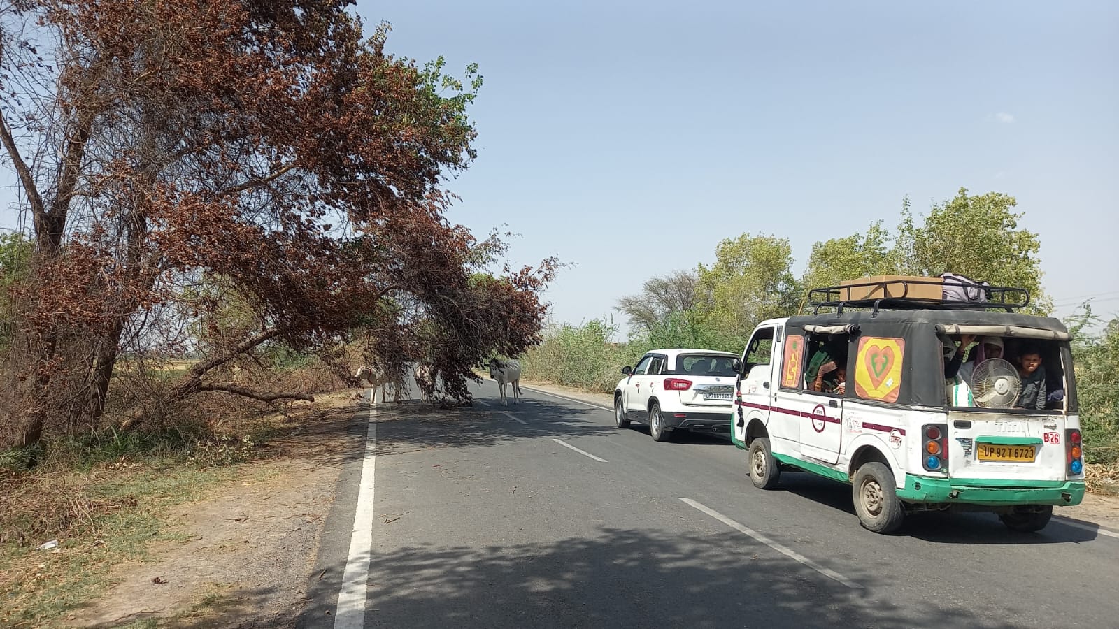 झाँसी जिले के मोठ तहसील में 16 मई की दोपहर बारिश के साथ तेज आंधी आई थी। जिसके चलते जगह-जगह बड़े-बड़े वृक्ष गिर गए। वही कस्बा मोठ से हाईवे की ओर जाने वाली सड़क पर ग्राम बम्हरौली के पास एक वृक्ष टूट गया और वह रोड पर आधा लटका हुआ है। 4 दिन बीत जाने के बाद भी वन विभाग एवं पीडब्ल्यूडी विभाग के अधिकारियों ने इस वृक्ष को सड़क से हटवाने की सुध नहीं ली। जबकि टूटे हुए वृक्ष से हाइवे की ओर से मोठ कस्बा जाने मुख्य रास्ता अवरुद्ध बना हुआ है। राहगीरों को अपनी गाड़ी बगल से होते हुए निकालनी पड़ती है। और कभी भी इस वृक्ष से बड़ा हादसा हो सकता है लेकिन बावजूद इसके अधिकारियों की लचल व्यवस्था के चलते इस वृक्ष को नहीं हटाया गया है। वही आपको बता दें कि उस जगह से लगभग 1 किलोमीटर की दूरी पर वन विभाग का दफ्तर है। लेकिन वन विभाग के अधिकारी व कर्मचारी अनदेखा कर यहां से निकलते रहते हैं। वही वृक्ष को हटाने के लिए किसी भी प्रकार का प्रयास नहीं किया गया है। स्थानीय लोगों के मुताबिक अगर इस वृक्ष को नहीं हटाया गया तो कोई भी बड़ी अनहोनी हो सकती है। अब देखना यह होगा कि संबंधित विभाग इस मामले को संज्ञान लेते हैं या फिर कोई राहगीर इस पेड़ से टकराकर दुर्घटना का शिकार होगा।