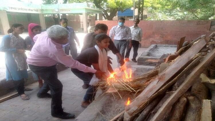 गौरी और चित्रा माहेश्वरी गर्ल्स इंटर कॉलेज में पढ़ती हैं। सोमवार को राजकुमार का निधन हो जाने पर परिवार पर वज्रपात हो गया। जानकारी पर रिश्तेदार और मोहल्ले वाले भी जुट गए। लेकिन दाह संस्कार में देरी होने पर रचना ने अपनी बेटियों को आगे बढ़ने के लिए कहा तो वहां पर मौजूद कुछ लोगों ने आपत्ति भी जताई। लोगों की बातें अनसुनी कर उन्होंने अपनी बेटियों की हिम्मत बढ़ाते हुए दाह संस्कार कराया।