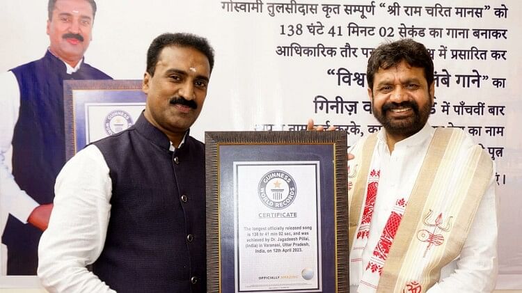 श्रीरामचरितमानस अब विश्व का सबसे लंबा गीत बन चुका है। गिनीज बुक ऑफ वर्ल्ड रिकॉर्ड में दर्ज होने के साथ ही अमेरिका के नाम दर्ज ये रिकॉर्ड अब भारत के नाम हो चुका है। 138 घंटे 41 मिनट और 20 सेकेंड के श्रीरामचरितमानस गीत को काशी के डॉ. जगदीश पिल्लई ने अपनी आवाज दी है।