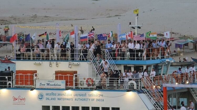 वाराणसी में क्रूज पर सवार जी-20 देशों के मेहमान