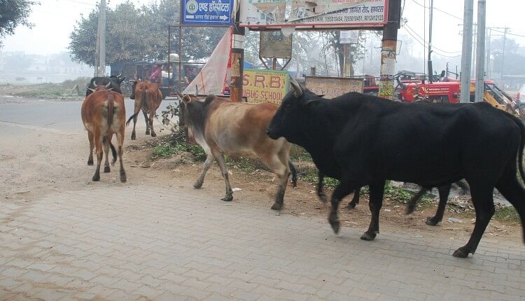 हाथरस में सड़क पर घूमते छुट्टा गोवंश। संवाद