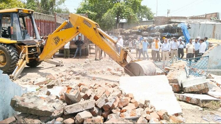 माफिया अजीत शाही के कब्जे की संपत्ति पर चला बुलडोजर।