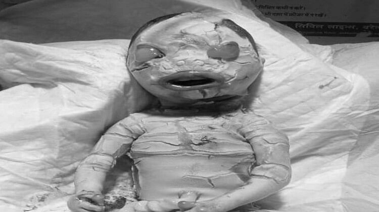 परिजनों ने बताया कि शरीर पूरी तरह सफेद था। त्वचा जगह-जगह से फटी हुई थी। आंख की पलकें पलटी थीं। होंठ का विकास पूरी तरह नहीं हुआ था। मुंह में ऊपर के कई दांत भी निकल आए थे। डॉक्टर के मुताबिक, ऐसे जन्मे बच्चों को हार्लेक्विन इक्थियोसिस बेबी कहा जाता है।