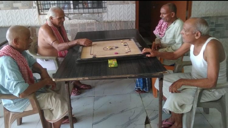 वृद्धाश्रम में कैरम खेलते बुजुर्ग