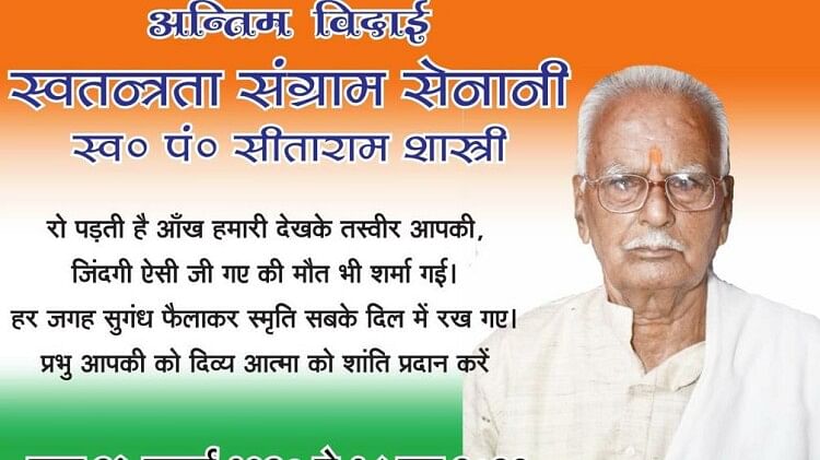 स्वतंत्रता संग्राम सेनानी सीताराम शास्त्री का निधन