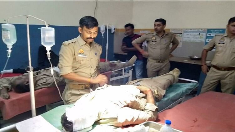 ट्रामा सेंटर की ओटी में घायल सिपाही व होमगार्ड पुत्र को देखते पुलिस कर्मी