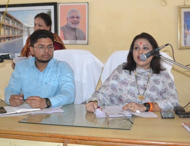 नगर पालिका टाउन हॉल में आयोजित बोर्ड की बैठक को संबोधित करतीं नगर पालिकाध्यक्ष श्वेता चौधरी