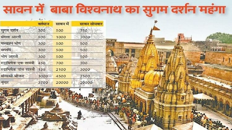 मुख्य कार्यपालक अधिकारी सुनील कुमार वर्मा ने बताया कि सावन में सुगम दर्शन के लिए श्रद्धालुओं को पांच सौ रुपये, मंगला आरती के लिए एक हजार, मध्याह्न भोग आरती के लिए 500 रुपये, सप्तर्षि आरती के लिए 500, भोग आरती के लिए 500 रुपये देने होंगे।