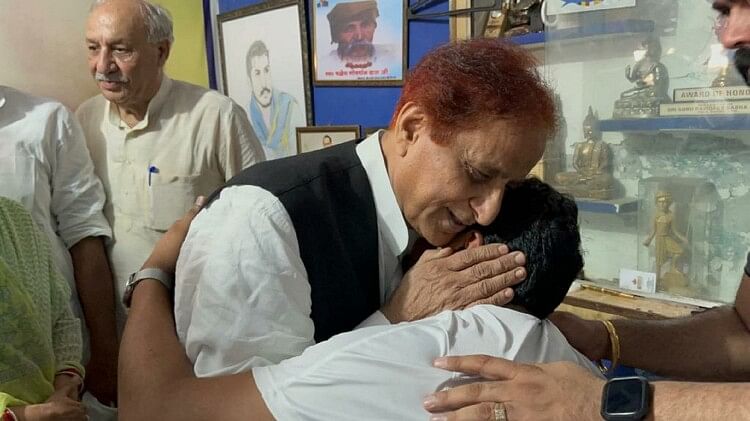 कस्बे की हरिजन कॉलोनी गली नंबर दो स्थित आजाद समाज पार्टी के राष्ट्रीय अध्यक्ष चंद्रशेखर आजाद के आवास पर शाम करीब पौने पांच बजे पहुंचे प्रदेश सरकार के पूर्व काबीना मंत्री एवं सपा के दिग्गज नेता मो. आजम खां ने कमरे में पहुंचते ही चंद्रशेखर आजाद को गले लगाकर उनका हालचाल जाना।