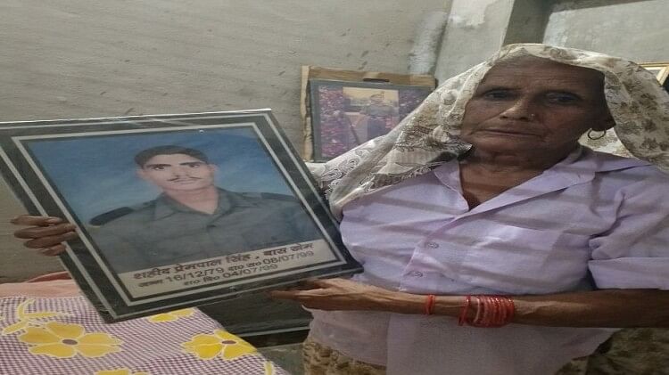 शहीद बेटे प्रेम पाल सिंह के तस्वीर के साथ मां