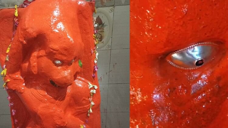 शनिवार की दोपहर से ग्यारहवें रुद्र महावीर हनुमान जी की मूर्ति की दाहिनी आंख से रुक-रुककर आंसू जैसा कोई तरल पदार्थ निकल रहा था। यह देख लोगों ने मूर्ति पर फूल माला चढ़ा कर अनजाने अपराधों की क्षमा याचना की। मंदिर प्रांगण में भारी संख्या में भक्त एकत्रित हो गए।
