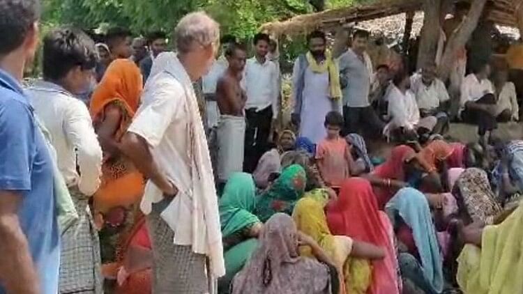 मुसींवा गांव में सर्प दंश के शिकार दो बालकों के घर के बाहर लगी भीड़